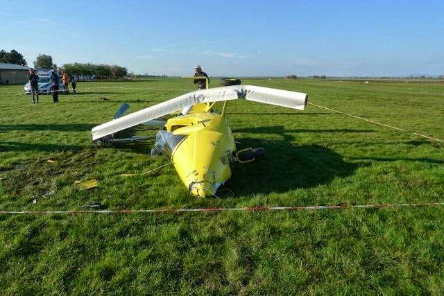 March 24th 2019 - Tannheim airfield, Germany - Auto-Gyro Cavalon - Registration unknown - Local media report the gyrocopter crashed during take off, rolling onto its side. The pilot escaped with minor injuries.